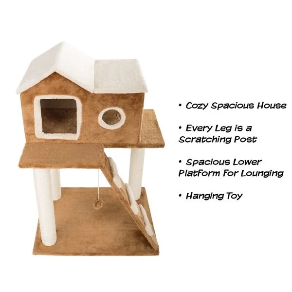 Give your cat or kitten the perfect place to nap, scratch, and play with the unique 3-Tier Cat Tree by Pet Adobe. This attractive cat activity tower features multiple scratching posts, a hanging toy, a spacious and comfortable condo for hiding, a fun ladder for climbing and a platform for lounging to offer your cat their own slice of kitty paradise! It is easy to assemble for convenience and is covered in soft plush fabric for maximum comfort for your cat!
