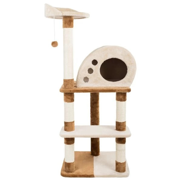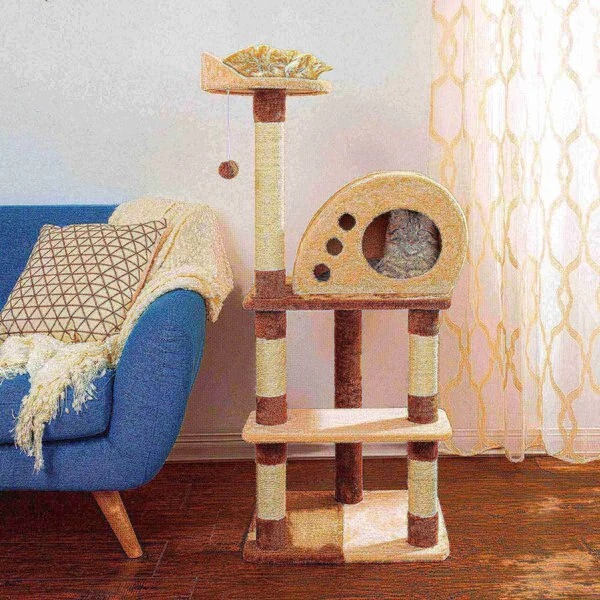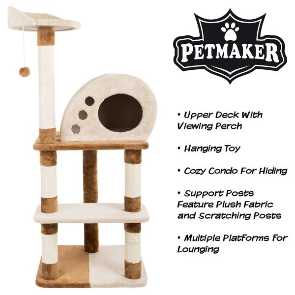 Give your cat or kitten the perfect place to nap, scratch, and play with the unique 4-Tier Cat Tree by Pet Adobe. This attractive cat activity tower features multiple scratching posts, an upper deck viewing perch, a hanging toy, a comfortable condo for hiding, and two platforms for lounging to offer your cat their own slice of kitty paradise! It is easy to assemble for convenience and is covered in soft plush fabric for maximum comfort for your cat!