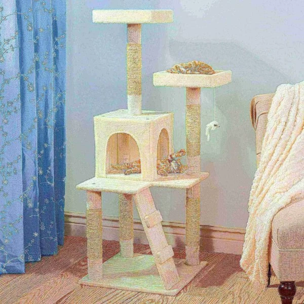 This Cat Tree House from Pet Adobe is a 4-foot tall tower of kitty condos, scratching posts and perches – everything your indoor cat needs for playtime, napping and solace. Featuring a stable wooden base, plush carpet and sisal rope, this easy to assemble climbing structure will keep multiple cats entertained and their claws off your furniture.