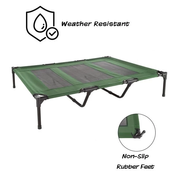 The Elevated Pet Bed by Pet Adobe is a comfortable and practical sleeping solution for your furry friend! Lightweight and portable with a carrying case included, this raised pet bed is a travel friendly option. Weather resistant and perfect for both indoor and outdoor use, this elevated bed provides better ventilation and body temperature regulation for your pet, helping them stay relaxed and happy even in hot or cold temperatures. Your dog, cat, or small pet will love resting on this cot-style bed!