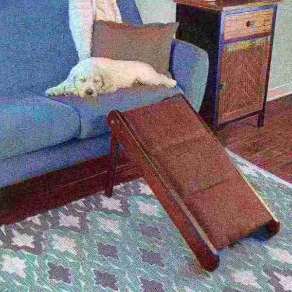 The Folding Pet Ramp from Pet Adobe makes it easy for dogs of any size, senior cats and puppies to get on top of furniture or into your vehicle. This gradual inclined transition is made of durable wood designed to hold up to 80-pounds and has foam pads covered in textured brown fabric that provides traction for your pets. The ramp folds up for compact storage under your bed, in the back of your truck, or inside an RV!