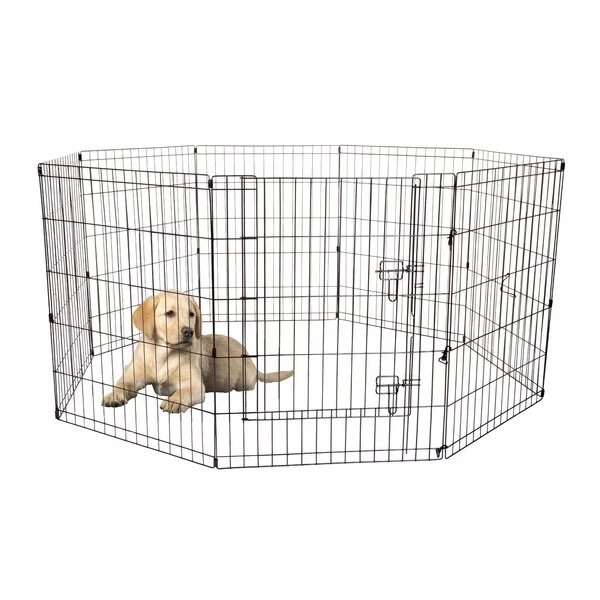 The Pet Playpen by Pet Adobe is a great way to keep your pet safely contained while they play. Ideal for puppies, kittens, bunnies or pets up to 40lbs, this durable playpen is great for both indoor and outdoor use. The playpen is easy to set up with no tools needed and comes with 8 ground stakes and 4 snaps to keep the pen securely in place. The 8 panels can be disassembled and folded down flat for easy storage and portability.