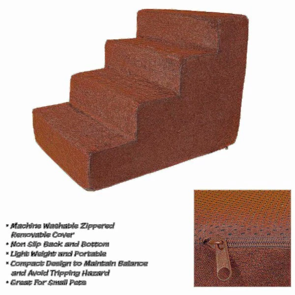 The High-Density Foam Stairs for Pets from Pet Adobe makes it easy for small dogs, senior cats, and puppies to get on top of furniture or into your vehicle. This set of four steps is made of high-density foam to hold up to 25 pounds and has a removable cover that is machine washable. The steps are lightweight enough to move them around the home effortlessly or while traveling.