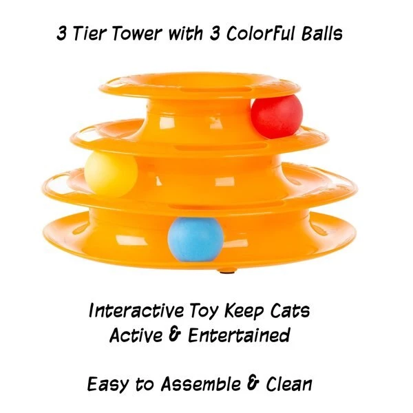 This Ball Track Tower Cat Toy from Pet Adobe has 3 levels for your pet to push the 3 colorful balls around to stimulate them at playtime. This interactive toy encourages extended play to help your kitten or multiple cats release energy with independent play when you are not home. This durable plastic tower snaps together in seconds and cleans up with a damp cloth for your convenience.