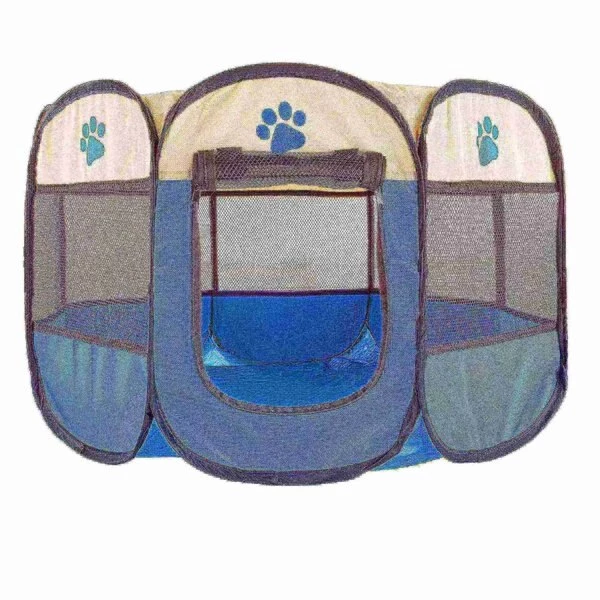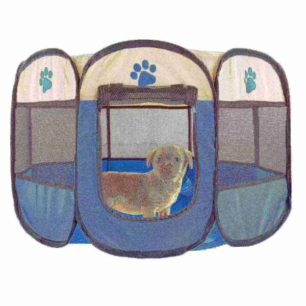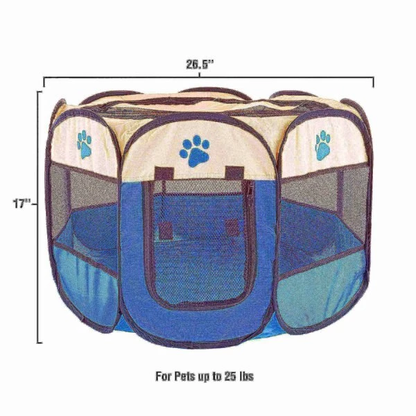 This portable Pop-Up Playpen with Carrying Bag from Pet Adobe helps keep your pet comfortable and safe at home or on the go. A great alternative to the traditional kennel, this sturdy playpen is ideal for indoor/outdoor use, and is extra tall to contain your dogs, cats or other small pets while giving them room to move and play. The Pop-Up Playpen easily folds flat to fit in the included carrying bag, making it conveniently portable for easy storage and travel. This soft crate features a removable roof to allow the sun to shine in or provide shade when needed; it's an essential pet accessory!