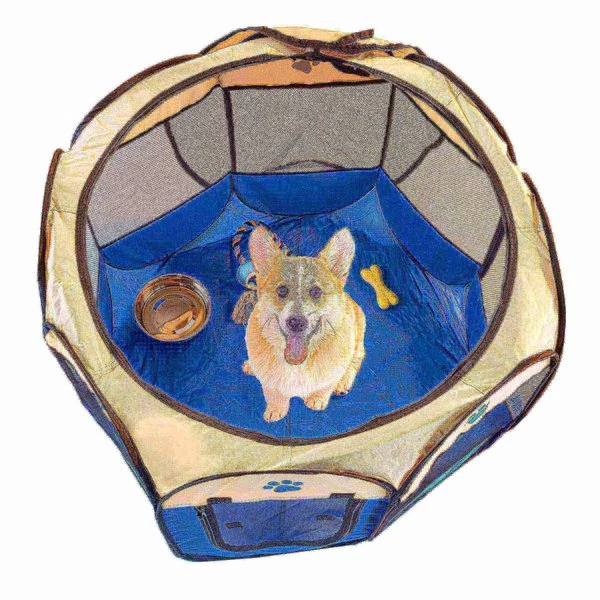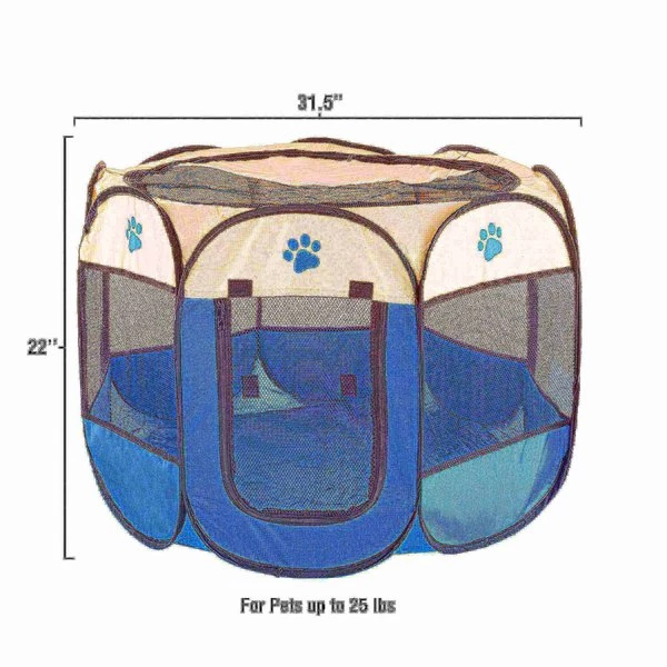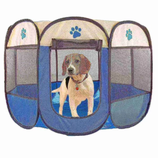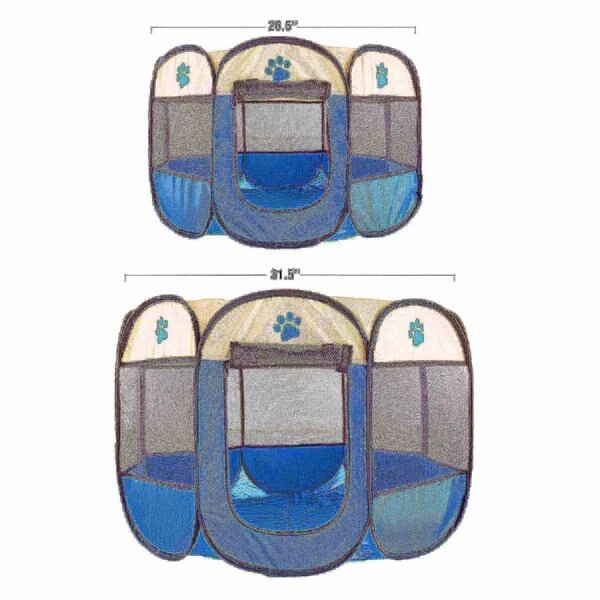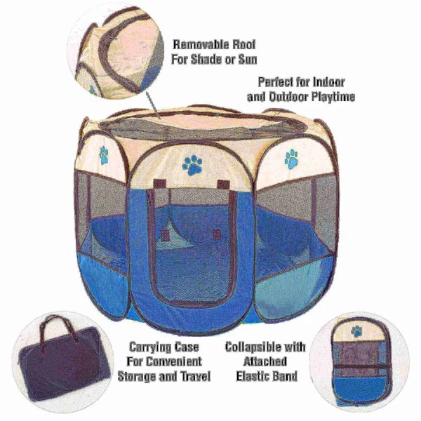 This portable Pop-Up Playpen with Carrying Bag from Pet Adobe helps keep your pet comfortable and safe at home or on the go. A great alternative to the traditional kennel, this sturdy playpen is ideal for indoor-outdoor use, and is extra tall to contain your dogs, cats or other small pets while giving them room to move and play. The Pop-Up Playpen easily folds flat to fit in the included carrying bag, making it conveniently portable for easy storage and travel. This soft crate features a removable roof to allow the sun to shine in or provide shade when needed; it's an essential pet accessory!