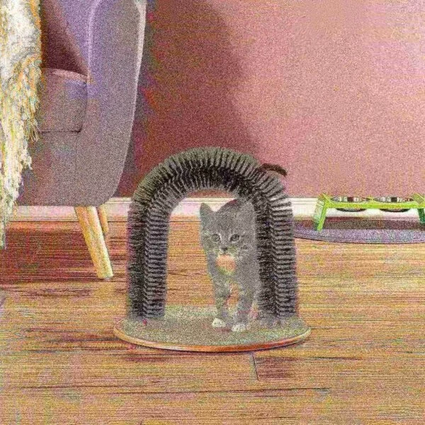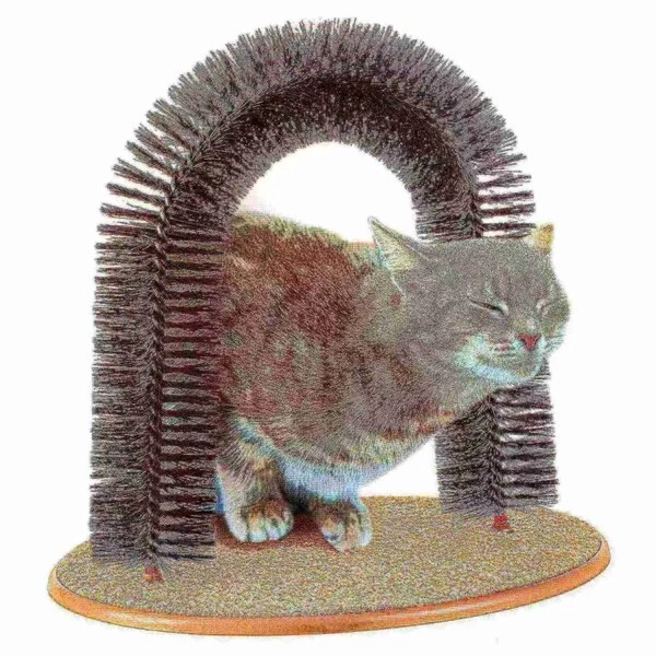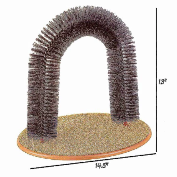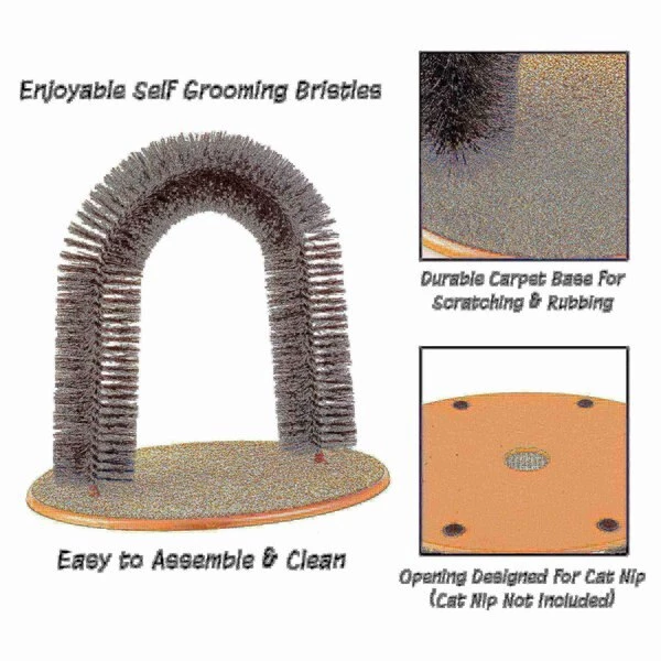 Keep your cat's fur looking sleek and healthy with the Pet Adobe Self Grooming Arch. The arched ring features bristles that gently brush your cat's fur to help with shedding and removes any excess hair when they rub against it. The self groomer also features a sturdy carpet base for your cat to use as an outlet for scratching. While it acts as a massage to your feline friend for enjoyable use, it is also an ideal way to protect your home and furniture from cat hair and claw marks. The self grooming arch is easy to assemble, easy to clean, and even contains a no-mess opening to place catnip to help attract your cat or kitten!