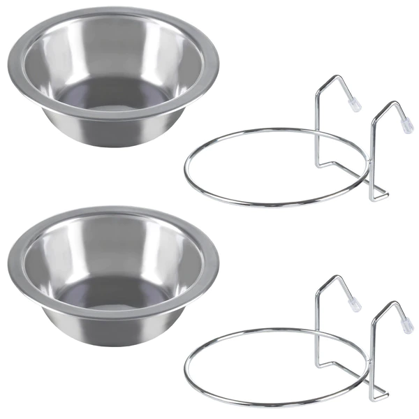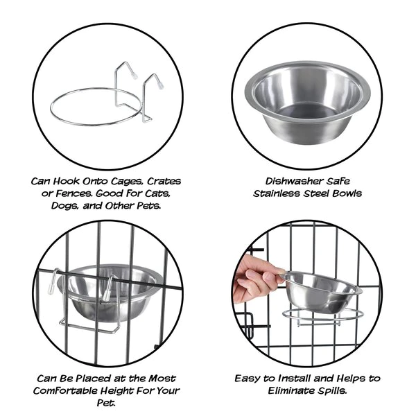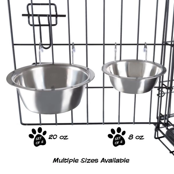 The Stainless Steel Hanging Pet Bowls by Pet Adobe offer a safe, reliable and no mess feeding option for every pet owner. The hanging brackets help to keep each dish steady to allow your pet to eat and drink easily, and also helps to prevent mess and spills in the crate. Made of high quality material that does not harbor bacteria and odor, these long-lasting bowls are an ideal addition to your assortment of pet supplies for your furry friends!