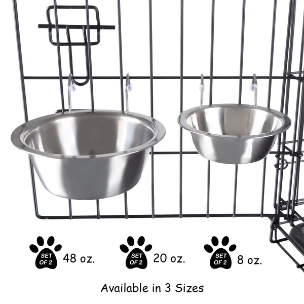 The Stainless-Steel Hanging Pet Bowls by Pet Adobe offer a safe, reliable and no mess feeding option for every pet owner. The hanging brackets help to keep each dish steady to allow your pet to eat and drink easily, and also helps to prevent mess and spills in the crate. Made of high-quality material that does not harbor bacteria and odor, these long-lasting bowls are an ideal addition to your assortment of pet supplies for your furry friends!
