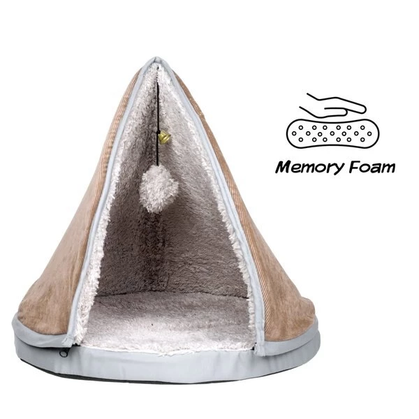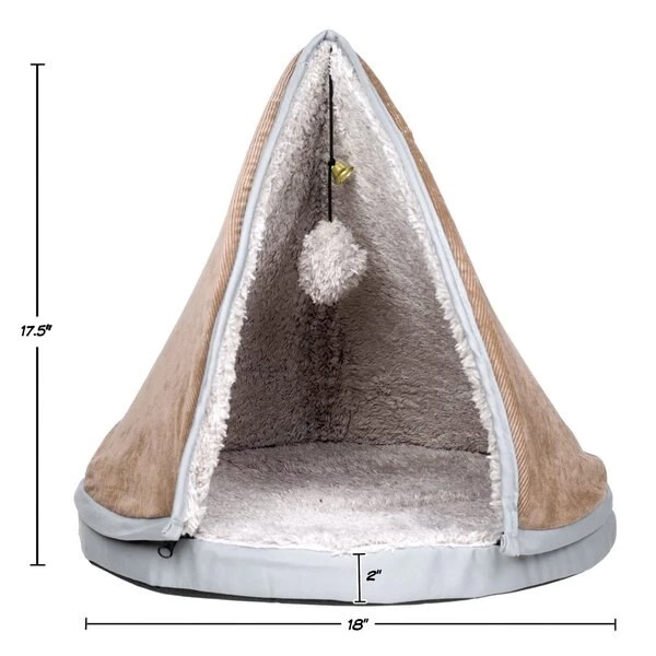 This memory foam Sleep and Play Cat Bed from Pet Adobe is the perfect hideaway for your feline friends. The Teepee style enclosed cat bed provides the feeling of safety and solitude, and features a dangling sherpa pompom and bell for a little fun while lounging. The memory foam bed and Teepee top are lined with luxuriously soft sherpa to provide your cat with ultimate comfort. Teepee top is removable for easy cleaning, storage and more.
