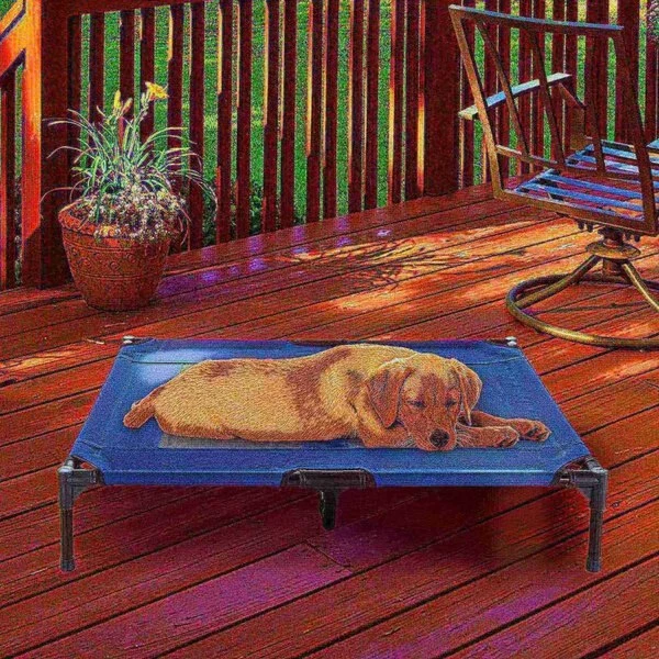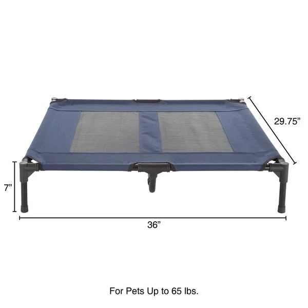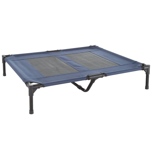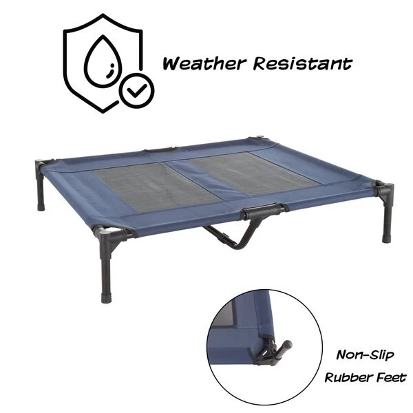 The Steel Frame Elevated Dog Bed from Pet Adobe is the perfect place for your furry friend to rest after a long walk, a day of play, or just quality time with the family. It features a sturdy powder-coated steel frame with an additional center support bar, 2 mesh panels sewn into the water-resistant canvas fabric for ventilation, skid-resistant feet for extra stability during movement, and a carry bag for compact storage and portability. This cozy pet cot is easy to assemble and just as easy to spot clean with soap and water.