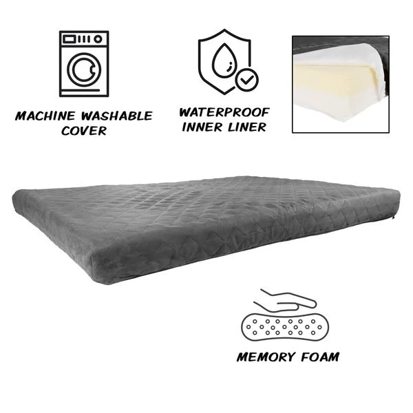 The Waterproof Memory Foam Pet Bed by has dual covers, memory foam and a 100 Percent waterproof inner lining to provide ultimate comfort, support, and protection for your pets. The removable waterproof inner cover protects the memory foam from getting wet or soiled if your active pet is a swimmer or enjoys playing in the mud. The microsuede removable outliner cover provides comfort has a water-resistant bottom and is machine washable. Designed to achieve maximum comfort and support for your four-legged friend, this easy to care for bed is sure to be a hit with both you and your pet!