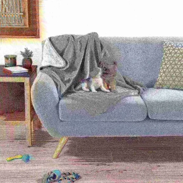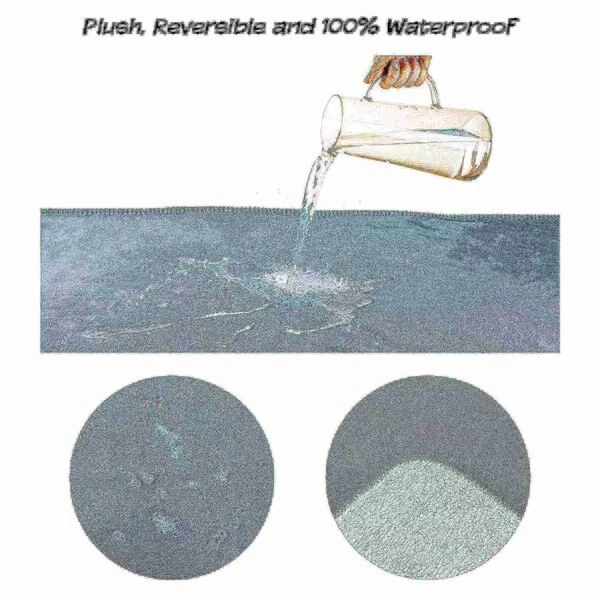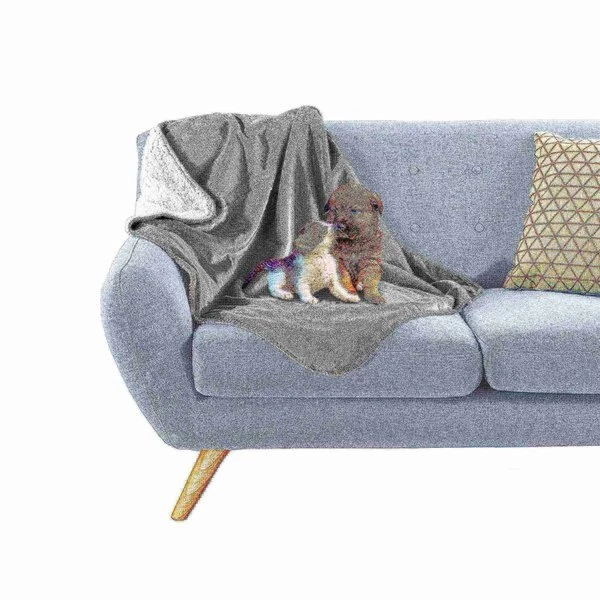 Protect your couch, bed, car seats and flooring with the Waterproof Pet Throw Blanket from Pet Adobe. This 40 x 30-inch Sherpa lined fuzzy throw blanket has a waterproof flannel backing that prevents drool, urine, or other liquids from penetrating into your furniture. The warm and cozy blanket also protects your chairs and sofas from pet hair and is machine washable.