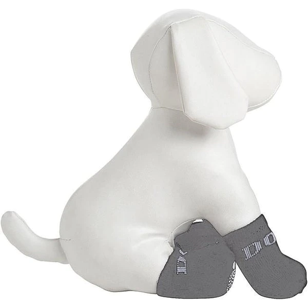 Keep your pooch warm this winter with these dog socks. These socks feature rubberized bottom grips to help prevent your pet from slipping and sliding.Materials: Cotton.One size.Rubberized grip bottoms.Color: Blue and White.