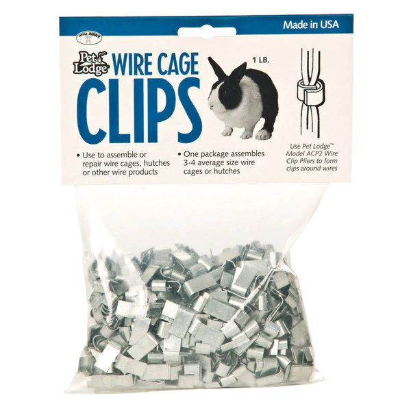 These handy metal clips are designed for assembling or repairing 14 to 16 gauge wire panels for rabbit hutches
