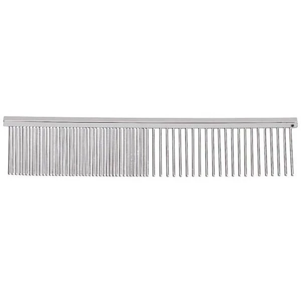 Our European-style Master Grooming Tools greyhound grooming combs are constructed from steel. An essential tool for fluffing. detangling. and removing dead hair from medium to long-haired dogs and cats.Our Master Grooming Tools were designed by groomers specifically to increase comfort and reduce the risk of injury. Versatile combs are an essential tool for fluffing. detangling. and removing dead hair from medium to longhaired dogs and cats. Hardened steel teeth are drilled into the solid brass steel-plated spine. Non-slip spine is contoured for a better grip and ease of use. Each is blister-packed for retail and guaranteed for life. Face and Finishing Comb is the perfect size for working around faces. ears. eyes and hard to reach areas Greyhound Combs are available in Fine/Coarse. Medium/Coarse and Coarse styles Items may be combined for quantity discounts.