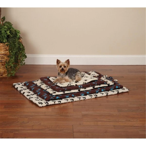 PetEdge is widely recognized as the leading source to pet care professionals because we offer such a wide selection of professional quality supplies and equipment.Our product development department searches the globe to bring you the best and most complete assortment of supplies and equipment at every day low prices. We invent and patent many of our own products working directly with the factories so we can provide you with high quality products at unbeatable prices.Our Slumber Pet Pawprint Crate Mats for dogs have a comfortable design that reverses from cozy berber to soft plush. Each dog crate mat has a special thermal lining keeps mat cool in summer and warm in winter for year-round comfort.Our Slumber Pet Pawprint Crate Mats reverse from cozy berber to soft plush for versatility and style. Special thermal lining keeps mat cool in summer and warm in winter for year-round comfort. Attractive pawprint design on a neutral Ivory background looks great in any decor. Each includes a display tag.