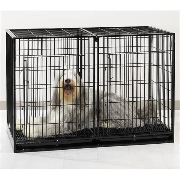 This ProSelect Extra Tall Modular Cage is made from durable. powder-coated steel. Features locking dividers and locking trays. Spring-loaded doors open easily with one hand.Strong. durable powder-coated steel construction Stackable design adds versatility Triple door latch for extra security Includes locking divider and locking trays Narrow grid floor grate for comfort and security Stackable ProSelect Professional Modular Cages allow you to design a cage bank to suit your needs. Each Modular Cage Unit is solidly constructed of heavy-duty steel with vertical and horizontal bars for added strength and security. Durable. easy-to-clean black powder-coat finish won't absorb stains or odors. Included divider locks into place and allows you to turn cage into two smaller units. Spring-loaded doors open easily with one hand and feature a triple locking latch to keep pets secure. Removable floor grates keep pets elevated above waste trays and have close wire spacing for added comfort. ABS plastic trays remove for easy cleaning and lock into place.*Cages assemble easily and disassemble for storage or transport. Optional Wheels to add mobility to the Modular Cage and three-tier Modular Cage Bank Kit are available and sold separately.