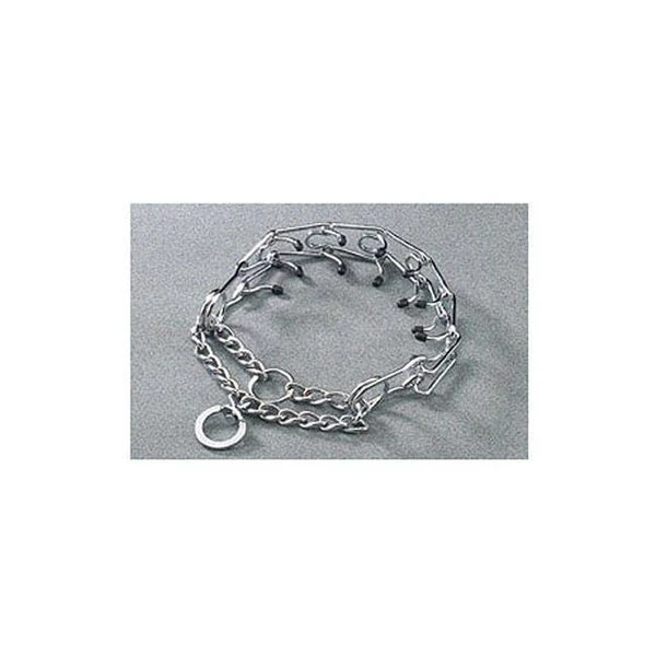 Our high-quality Guardian Gear Prong Collars are chrome-plated for durability and featureremovable blunt-cut rubber tips on smooth and rounded prongs to prevent injury. These great training aids provide a heavy-duty yet safe alternative to standard choke chains. Ruggedly constructed of electronically welded steel for added strength. Will not rust. tarnish or break. All Guardian Gear Collars are guaranteed for life. Extra links (see item ZW339) are sold separately. and can be easily added to collars to customize the length.