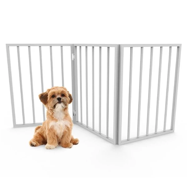 Keeping your pets where they belong has never been easier than with the foldable. free standing wooden gate- light weight barrier for small dogs / cats by petmaker. The free-standing gate is designed to fold. which allows it to be light weight while maintaining sturdiness. This stylish. wooden gate will look great in any part of your home. and is perfect for blocking off doorways. hallways. and stairs. FeaturesThis essential puppy product is light weight and easily folds together for storing purposesStylish and functionalThis gate does not require installation that could potentially damage your homeWith an accordion design. this pet gate is sturdy enough to barricade your small dog. puppy. or cat. without drillingSpecificationsColor: WhiteMaterial: Wood. MetalDimension: 24" H x 54" W x 1" LWeight: 6.7 lbs