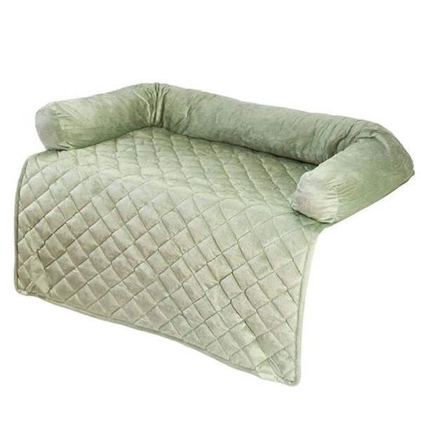 Petmaker furniture pet cover with bolster provides comfort for your pet while protecting your furniture. The water-resistant bottom layer provides extra defense against damage and stains to your upholstery. The three-sided memory foam filled bolster provides exceptional comfort for pets and protects furniture seat back and arms. Our extra-long drape helps to protect the front of your furniture too. FeaturesSpot clean with a clean damp clothRecommended for dogs under 60 poundsSpecificationsColor: SageMaterial: 100% Polyester. Polyurethane FoamDimension: 5" H x 35" W x 35" LWeight: 3.9 lbs