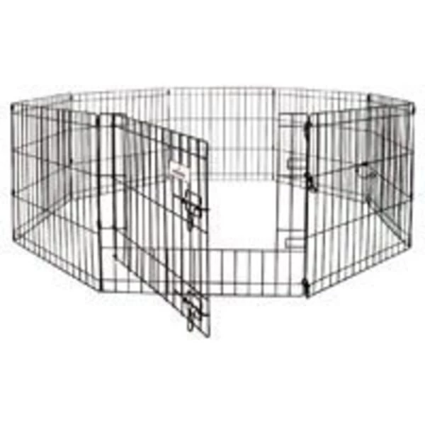 Petmate's® Exercise pen with door allows you to create a safe indoor or outdoor exercise area for your pet. The durable wire, solid hinge design is effortless to set up and folds down for portability and easy storage. The snap hook assembly also can be utilized to attach the pen to a wire crate.