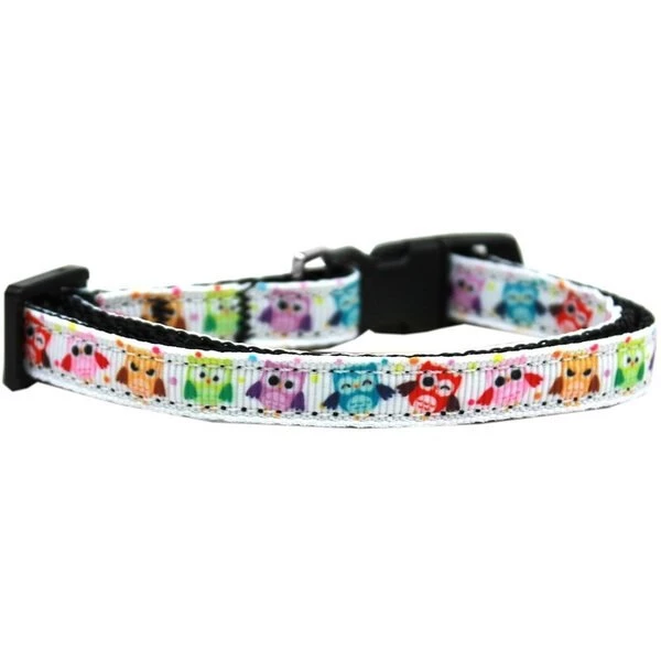 Bright Owls Nylon Ribbon Dog Collar We are a small. family-owned American workshop/factory that produces nearly 100.000 original products – fun pet apparel. strong dog and cat collars. cute pet toys. and more for everyone's favorite family members. SpecificationsSize: SmallMaterial: Nylon