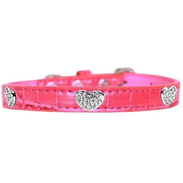 Croc Crystal Heart Dog Collar. We are a small. family-owned American workshop/factory that produces nearly 100.000 original products – fun pet apparel. strong dog and cat collars. cute pet toys. and more for everyone's favorite family members. SpecificationsColor: Bright PinkSize: 16