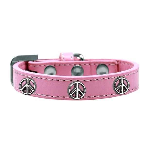 We are a small. family-owned American workshop/factory that produces nearly 100.000 original products – fun pet apparel. strong dog and cat collars. cute pet toys. and more for everyone's favorite family members. FeaturesPeace Sign Widget Dog CollarItems for all types of petsQuality selection for everyday pet needsAssured hygiene and care for petsSpecificationsColor: Light PinkSize: Size 12