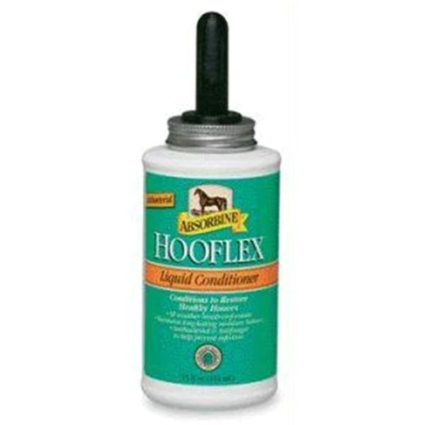 ABSORBINE HOOFLEX CONDITIONER LIQUID WITH BRUSHMaintains moisture balance and prevents cracks.Unique formulation of nine therapeutic ingredients.UPC : 011444056010Size : 15 OUNCELength : 1.12Width : 2.37Height : 9.12Product Type : Equine Grooming – Hoof Care & Accessories / Hoof ConditionersShipping Dimensions: 1.12×2.37×9.12