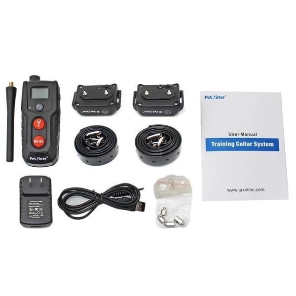 FeaturesAdvanced RF 434Mhz Technology boosts range up to 330 yards for 2 dogsCompletely waterproof remote transmitter and collar receiverCan control up to two collar receivers. includes two receiversInstead of static shock mode. 10 levels of vibration stimulation is more safeAccurate stimulation for two training modes: vibration and beepBoth transmitter and collar receiver can be charged at the same timeWhite stenciling against an orange background. easy viewing for the user