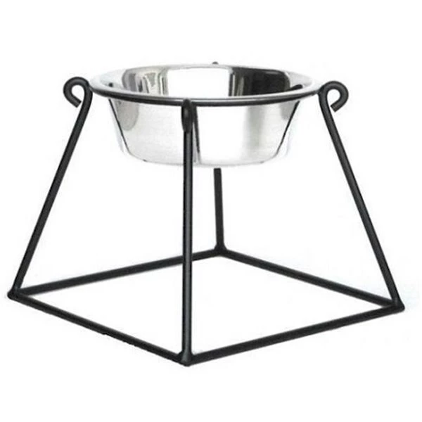 Features:Size: 12.5"L; x; 12.5"W; x; 10"H3 Quart CapacityIncludes durable wrought iron standSturdy ConstructionStainless steel bowlRounded sides keep food and water centeredLarge bowl opening enable easy refillingDetachable bowls for easy cleaningNo sharp edgesThis elevated dog feeder is perfect for all dogs of any size. It allows your dog to eat in a natural position which improves overall health and posture. Your dog will never strain while eating again! The broad base ensures that;this elevated dog feeder;will not tip over or slip during meal time.