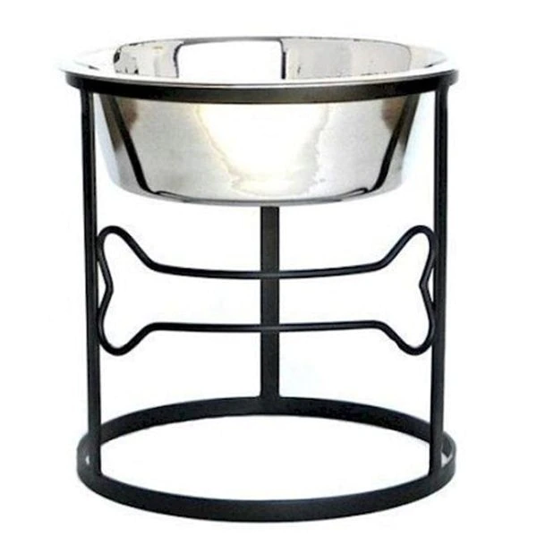 Features:Size: 9.5"; L; x; 9.5"; W; x; 10"; H3 Quart CapacityIncludes durable wrought iron standSturdy ConstructionStainless steel bowlRounded sides keep food and water centeredLarge bowl opening enable easy refillingDetachable bowls for easy cleaningNo sharp edgesYour dog will thank you for this stylish elevated dog feeder. It will change his whole attitude toward meal time when he no longer needs to crouch down to eat. This feeder improves dog health and posture. The sturdy metal frame firmly holds to stainless steel bowl in place and effectively prevents messes and spills. The unique dog bone design makes sure this elevated feeder will be a welcomed edition to your home's decor.