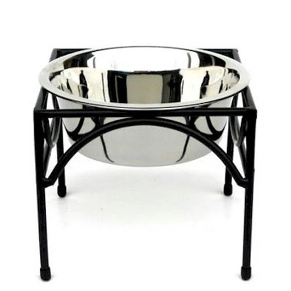 Features: Size: 8"L x 8"W x 7"H2 Quart Capacity Includes durable wrought iron stand Sturdy Construction Stainless steel bowl Rounded sides keep food and water centered Large bowl opening enable easy refilling Detachable bowls for easy cleaning No sharp edges Your dog will feel like royalty with the Regal Raised Dog Feeder! It will change both of your attitudes toward meal time when;your pet no longer needs to struggle;and crouch down to eat. This;raised dog;feeder improves your dogs overall health and posture. If your pet suffers from back pain this bowl is sure to;help. The sturdy metal frame firmly holds to stainless steel bowl in place and effectively prevents messes and spills.
