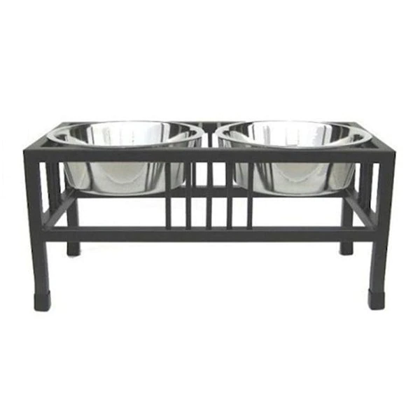 Elevated dog bowls are a necessity to your pet's health because they allow your pet to eat without crouching down in an uncomfortable position. Dogs can develop back and neck problems when they eat from floor level bowls. If you have an older pet with arthritis this product is;a necessity for you!FeaturesDurable wrought iron standSturdy ConstructionOval designStainless steel bowlsRounded sides keep food and water centeredLarge bowl opening enable easy refillingDetachable bowls for easy cleaningNo sharp edgesSize – Extra LargeDimension – 21.5 x 11 x 18 in.Capacity – 3 Quart
