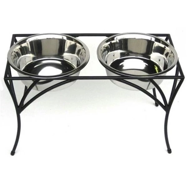 Features: Size: 20" L x 9.5" W x 12" H – 3 Quart Bowls Durable wrought iron stand Non-skid plastic tips on legs Sturdy Construction (2) Stainless steel dog bowls Removable bowls for easy cleaning No sharp edges The Large Arbor is a raised feeder with clean. curved lines. The side view of the elevated dog bowl stand has an arbor shape. The simple. yet elegant design of this raised dog feeder will go with any home decor. The Arbor Elevated Double Feeder allows you to give your pet's food and water at the same time. The raised double diner dog bowl feeder set comes with non-skid plastic tips on legs. The Arbor diner has no top bars. adding to the minimalist. organic look. The Tree Branch Motif Arbor Raised Double Diner Dog Bowl sturdy elevated design is great for your pet's health and greatly minimizes the stress on neck. back. and joints. Elevated feeders also aid in your pet's digestion and reduces gas because your pet no longer needs to slouch to eat or drink. No sharp edges that your pet could catch a collar or tag on. Your pet will never strain while eating again! Providing a comfortable feeder height for pets promote better posture and aids digestion.