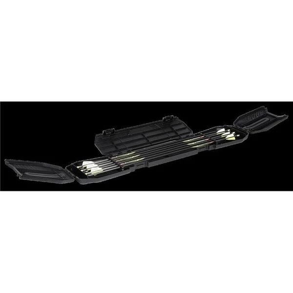 FeaturesBow-Max Trifold Arrow CaseHeavy-duty materialDurable "H" latch closuresHolds six arrows up to 32.75 inches longInternal storage for small accessoriesSpecificationsColor: BlackDimension: 37" L x 8" H x 2.5" WWeight: 2 lbs