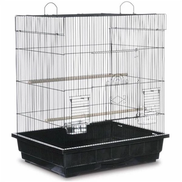 Features: Dimensions: 25" W x 21" D x 29.5" H 1/2" Wire Spacing Available in Black or White Superior construction Uniquely molded plastic base 2;Feeder cups 2;Perches The;Square Roof Parakeet Cage is a new larger cage offering plenty of room for parakeets. canaries and other small birds. A large front door provides access to the entire cage interior while the smaller door-within-a-door allows owners to access their pets without opening up the entire cage. Removable bottom grille and pull-out bottom tray help make cleaning quick and easy.;This bird cage;is designed for parakeets. canaries and other small birds.