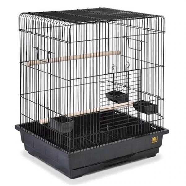 Features: Dimensions: 25" W x 21" D x 29.5" H 3/4" Wire Spacing 9 Gauge Wire Available in Black Superior construction Uniquely molded plastic base 3;Feeder cups 2;Perches The;Square Roof Parrot Cage is a new larger cage offering plenty of room for small parrots such as African greys and eclectuses. A large front door opens down landing-style and provides access to the entire cage interior. The removable bottom grille and pull-out bottom tray help make cleaning quick and easy.;This bird cage;is designed for small parrots such as African greys and eclectuses.
