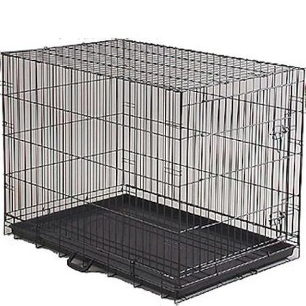 Features: Dimensions: 19.25" L x 12.5" W x 15" H Double security locks on large front doors Durable (EXTRA DEEP) plastic pan is included with the crate. Heavy 7 & 10 gauge wire Crates fold in seconds to a flat portable "suitcase style" package Two removable black plastic comfort handles for easier handling Available in luxurious. rust-proof. Black baked powder coated finish with durable plastic pans The Economy Dog Crate has a durable. black baked powder coated finish and an extra deep 1 1/2" pan to contain messes and;hold cushions in place -removes easily for cleaning. The heavy gauge body mesh is sturdy and stable.