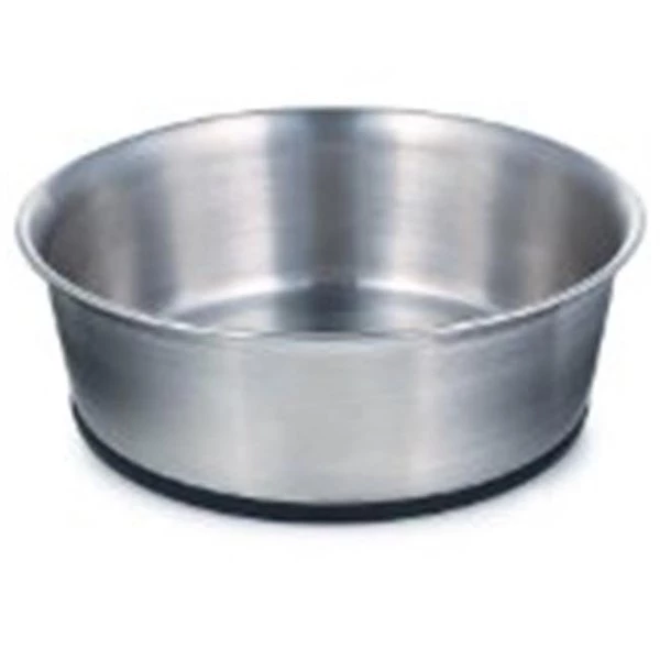 Our ProSelect Stainless Steel Bowls with Rubber Bases combine the durability and convenience of stainless steel dog bowls with non-skid rubber bottoms.Won’t slip. slide. or damage floors while dogs eatEasy to clean bowls are dishwasher-safeBuilt to resist scratches. rust. and denting.Material – Stainless steel. Non-skid rubber basesSize – 8 in. W. 2 10/16 in. DCapacity: 52 oz.