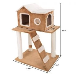 Pet Adobe 3-Tier Cat Tree House- Play Area with 3 Perches, Scratching Poles and Toys- 27.5 inch Tall