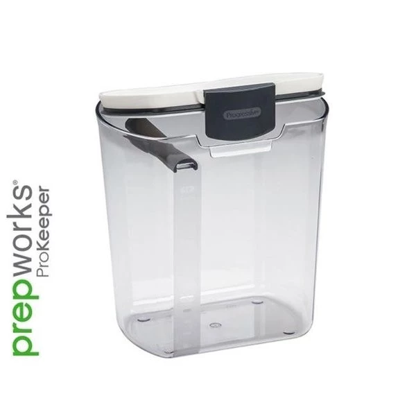 We are your one-stop solution for the best in home and commercial kitchen products. We strive to carry only the crème of the industry and our product range comes from our vide search for the right product for our everyday use. We are food lovers at heart and stand behind each of the products we sell.FeaturesThe Flour ProKeeper features a silicone seal for airtight storageThe removable leveler snaps into the lid for easy storageMeasurement marks clearly display remaining flourHolds up to 5 lbs of flour with room to spareHinged lid flips to easily fit in dishwasher4 qt CapacitySpecificationsMaterial: ABS. SAN. PP. Silicone and Stainless Steel