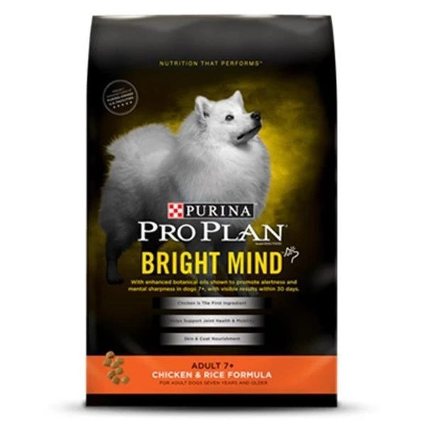 FeaturesPro plan bright mind 7+; chicken & rice dog foodCreated out of proprietary research that shows enhanced botanical oils provide an efficient fuel source for the brain in dogs age 7 & olderHelping naturally nourish their minds to help them think more like they did when they were youngerProvides complete & balanced nutrition for maintenance of adult dogs.Dimension – 4.75 x 16 x 32 in.Item weight – 30.3 lbs.