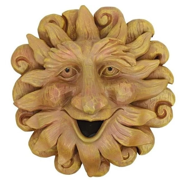 Birds fly to the celestial sun and into the mouth to nest and stay safe. Easily hangs on one nail/hook. Cleanout hole. Cast in resin and sculpted in detail. 10.25 in x 9.75 in x 4.25 in. Made in China.