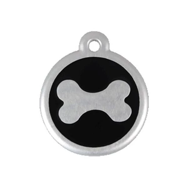 At Red Dingo we love our pets and you'll love our pet accessories for dogs and cats. Every one of our products uses high quality materials and is designed for durability and long lasting good looks.FeaturesMade up of a durable aluminum and enamel on one side thatconsists of a scannable 2-dimensional bar code and Human-readable web address on the other.Tag scan can be done with a smartphone (such as an Apple iPhone. Android. Blackberry. or Microsoft Windows Mobile device) Displays your pet's online profile stored at PetHub.com that shows information such as emergency contact numbers (you. your sitter. your vet. etc.). important medications. rabies tag. licensing information. and more! Powered by PetHub.com;links to a free subscription for data storage. and can be upgraded to their other subscriptions.Latest in pet protectionAn excellent addition or substitution to microchip.Safe and Fast return home for a lost pet.Size – LargeDimension – 1.20 x 1.20 x 1 in.Item Weight – 0.30 lbs.Pattern – Premium BoneColor – Black