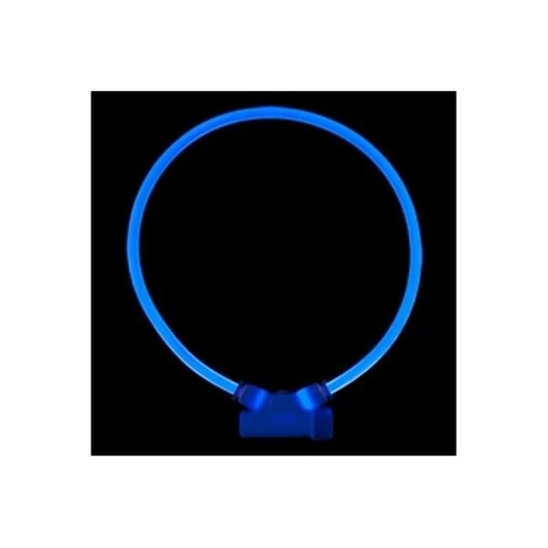 FeaturesOur light-up collars are weather proof and waterproof for swimming with multiple seals.The bright LED light operates using AAA batteries (alkaline or rechargeable).Color – BlueSize – Small to MediumDimension – 20 x 1 x 0.5 in.
