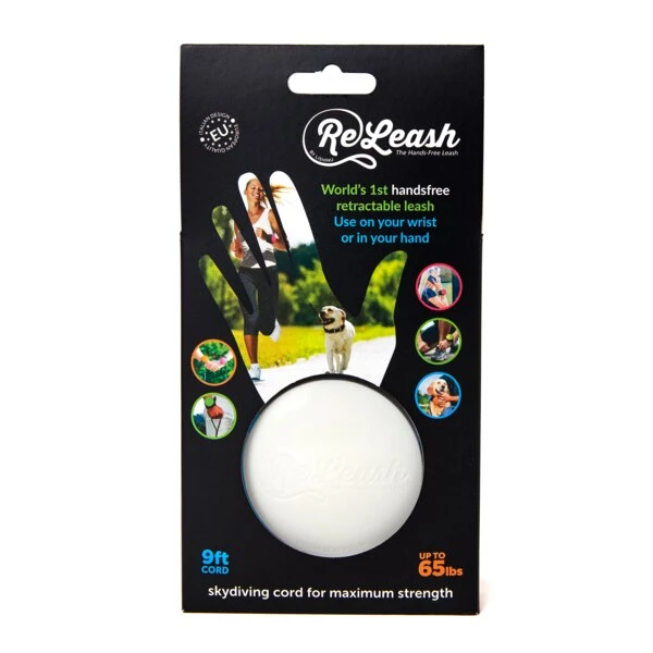 ANTI-SLIP, COMFORTABLE & SECURE – ReLeash Suitable for Dogs Under 66lbs quick lock and unlock feature. Super comfortable grip for those who walk long with their dogs. Our Strong ReLeash can carry your dog up to 66 lbs. Anti-Slip Handle, for secure gripping. STRONG & DURABLE LEASH – Retractable dog auto stretch leash tape extends up to 9ft Cord, strong and durable, made for daily use; with a strong spring for smoothly retracting dog leash give their dog maximum freedom while under your control. EASY TO USE – It allows you to maintain comfortable distance no matter if you’re walking, jogging, running, or just playing outdoors. Tangle free and consistent retraction dog leash extender. Easy to use lock and stay button. AUTO-LOCK MECHANISM – An excellent auto-lock mechanism makes it a seamless transition from retractable freedom to your dog at heel. It recognizes sudden movement and restricts the leash, giving you more control in more situations. It's calibrated to not lock too soon or dangerously, but just when you want it to. ENJOY A SAFE WALK – Allowing your dog to roam freely while maintaining control. Durable Ribbon gives plenty of space for you and your dog to enjoy a safe walk. Easy-to-carry enables you to use it anywhere with dogs. HANDS-FREE – A comfortable, adjustable neoprene strap goes on your arm quickly and easily. This changes what you can do and where you can go with your pet. Jogging, hiking, holding hands, tying shoes, opening doors, answering cell phones, carrying bags and anything else that uses your hands are all possible and safe with ReLeash. The Strap works as a hand-held leash as well for more control. Secure ReLeash to something solid for a moment if needed. ENGINEERED TO WORK FLUIDLY – An intelligent auto-lock mechanism makes it a seamless transition from retractable freedom to your dog at heel. It recognizes sudden movement and restricts the leash, giving you more control in more situations. It's calibrated to not lock too soon or dangerously, but just when you want it to. BUILT STRONG – Every part on the ReLeash is built to resist daily use and abuse. The neoprene strap, the 3 meter skydiving cord, the impact-resistant ABS plastic housing, and the laser-cut steel locking mechanism have been tested aggressively. Big dogs, small dogs, high energy and docile dogs, even chewers, tuggers, and barkers weren't able to best the human on the other side of the ReLeash, or damage any of its parts.