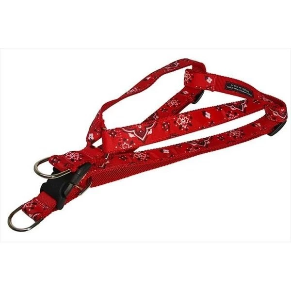 Our step-in harnesses have two adjustment points and a double-D-ring to attach the leash to. Simply have your dog step into the harness pull up the straps around your dog and buckle it shut.FeaturesType – Dog HarnessColor – RedDesign – BandanaSize – Medium 3/4 in. wide Adjusts 18 – 24 in.