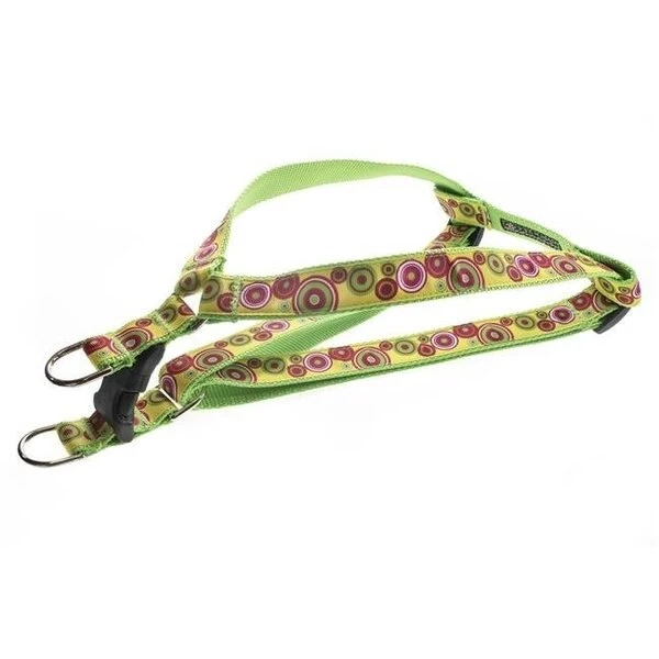 Our step-in harnesses have two adjustment points and a double-D-ring to attach the leash to. The harness is soft. durable and is made of sturdy nylon webbing. All harnesses are handmade in the USA. SpecificationsSize: SmallWide: 0.625 in.Adjusts Size: 15-21 in.Weight: 0.22 lbs